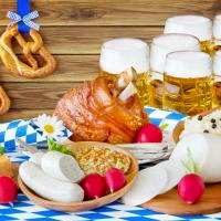 Dazu werden klassische Beilagen wie Sauerkraut, Pfannengemüse, knusprige Pommes frites und Kartoffeln serviert. Zum Abschluss genießen Sie Eis aus dem Dessertangebot.